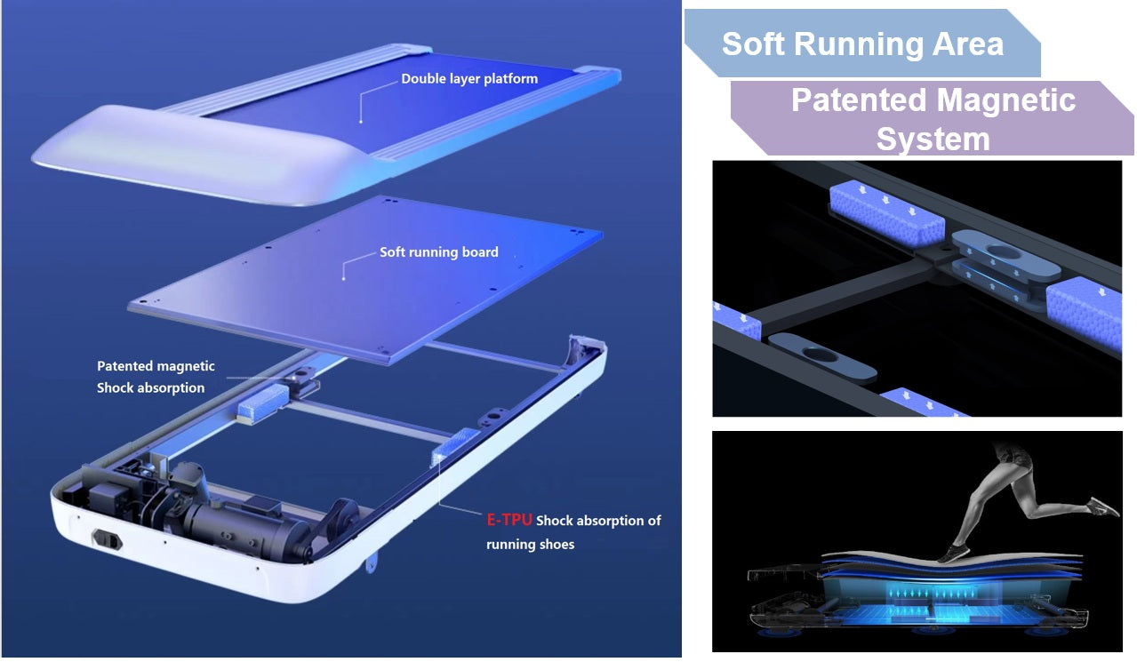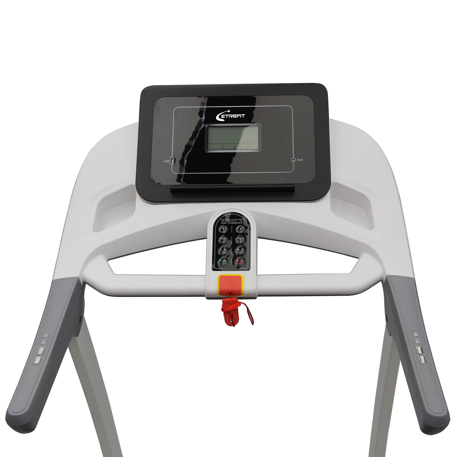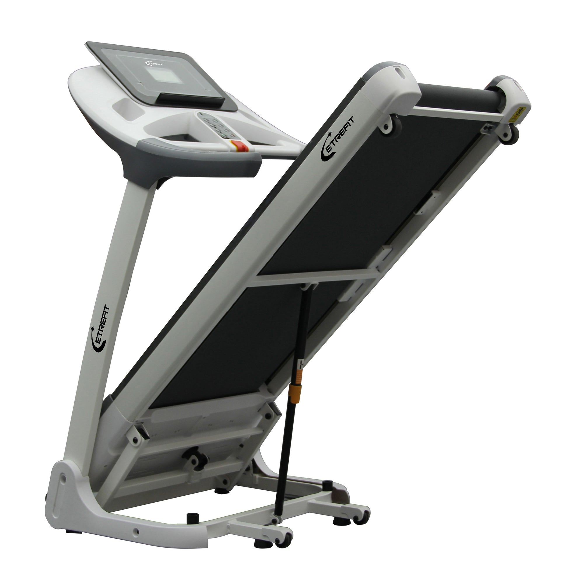 The EtreFit T8517S Treadmill offers a full silent design, thanks to its Patented Magnetic System, allowing for a quiet and smooth workout experience. Its Oil-Free running belt, made with polymer lubricating material, minimizes noise and provides a longer service life. Additionally, the treadmill is easily foldable, making it a space-saving option.
